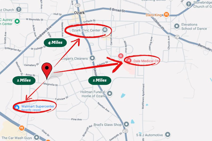 For healthcare needs, Dale Medical Center and multiple medical clinics, pharmacies, and urgent care facilities are located in and around Ozark, providing reliable access to everyday and emergency medical services. Larger hospitals and specialty care are also available nearby in Dothan, offering expanded healthcare options.
