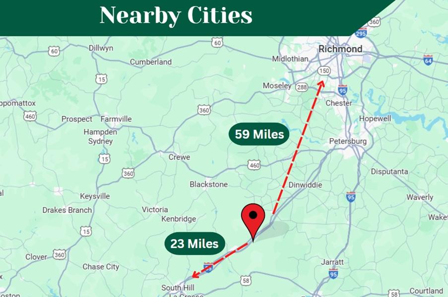 Major highways like I-85 and U.S. Route 1 make commuting easy to Petersburg, Richmond, or Emporia, giving you access to hospitals, colleges, and entertainment while keeping your home base peaceful and affordable.