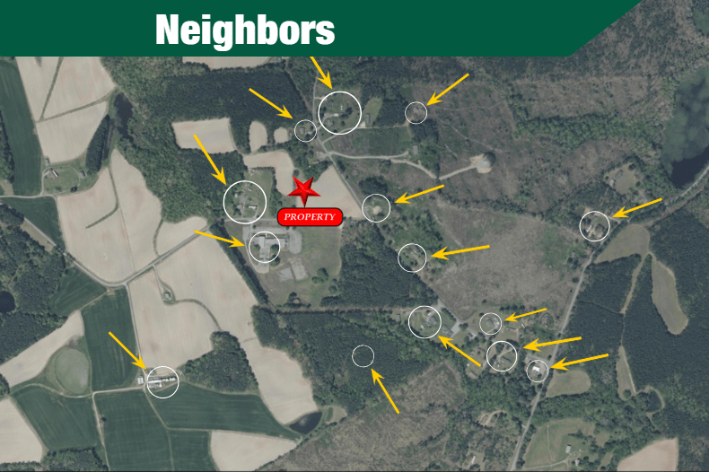 Every single neighbor you see here—perfectly pointed out by those yellow arrows—has been arranged to create an impenetrable shield of security and prestige around you. These aren’t just neighbors; they are a collective commitment to maintaining the ideal rural lifestyle. Notice the immaculate spacing—close enough for comfort, but far enough that your absolute peace is never, ever disturbed.
