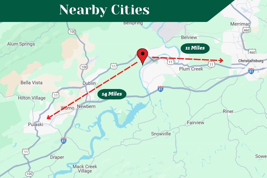 Pulaski and Christiansburg – Both within a short drive for additional shopping, dining, and entertainmentBlacksburg & Virginia Tech – Only 30–35 minutes away, expanding your access to cultural events, employment opportunities, and tech innovation