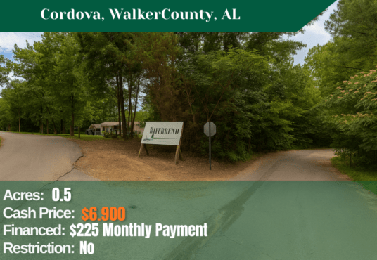 Small piece of lot in Walker county AL 0.5 acres for just $6,900 Cash – Owner Financing is available too!