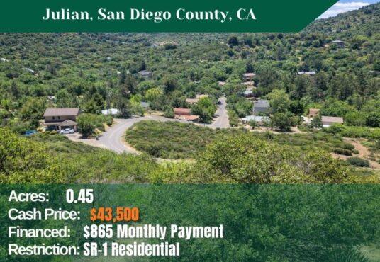 Welcome to the paradise of Southern California! 0.45 acres of land for just $43,500 nestled in the vibrant city of Julian!